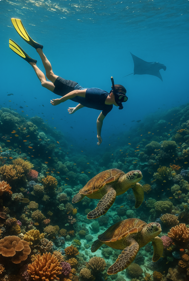 Bali er kendt for sine strande, rismarker og kultur – men også for sit imponerende undervandsliv. Øen og de nærliggende småøer har noget af Indonesiens bedste snorkling. Her kan du opleve farverige koraller, tropiske fisk og, hvis du er heldig, store havdyr som havskildpadder eller manta rays.